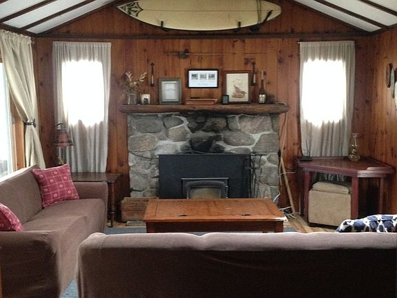 The 1 bedroom, 1 bathroom (newly renovated) single-family home with fireplace has breathtaking views of the lake off its front deck & patio. Enjoy loads of natural light through two large skylights, one in the great room (whose ceiling has been refinished) and another in the kitchen. Brand new Andersen windows throughout the house, and a screened in porch to enjoy the fresh air (without bugs). Plenty of activities year-round in the lake community & the laid-back mentality of everyone nearby makes for a relaxing retreat after a long day/week of work. Tenant responsible for heat, electric, and cable/internet bills. Owner open to month-to-month rentals or full year contract.