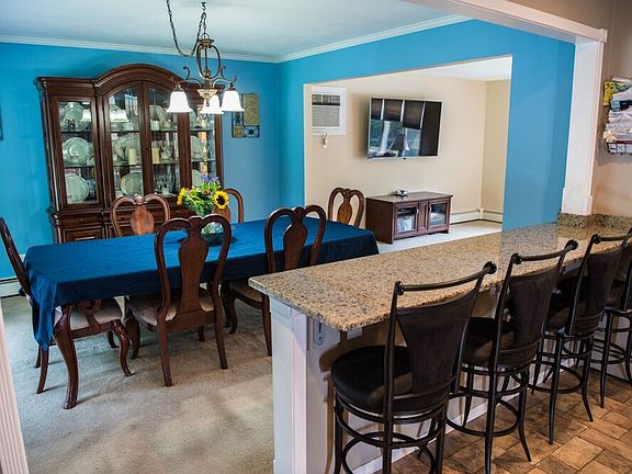 This expanded bi-level has views of Greenwood Lake, a large backyard for entertaining and a huge eat in kitchen. Its a perfect home for entertaining. This is a bi-level with lots of room! The kitchen, living and dining room are all oversized for a bi-level. The backyard has a house length deck with a level back yard for entertaining. Located across the street from Greenwood Lake, views all seasons. Located close to shopping, schools, houses of worship and a short drive to the wineries, farms and ski areas of Warwick. This is a great starter home. The down stairs has a half bath off the den. The driveway is three car widths wide. The kitchen is updated with tons of cabinets and counter space. The bathroom upstairs has new custom tile work.