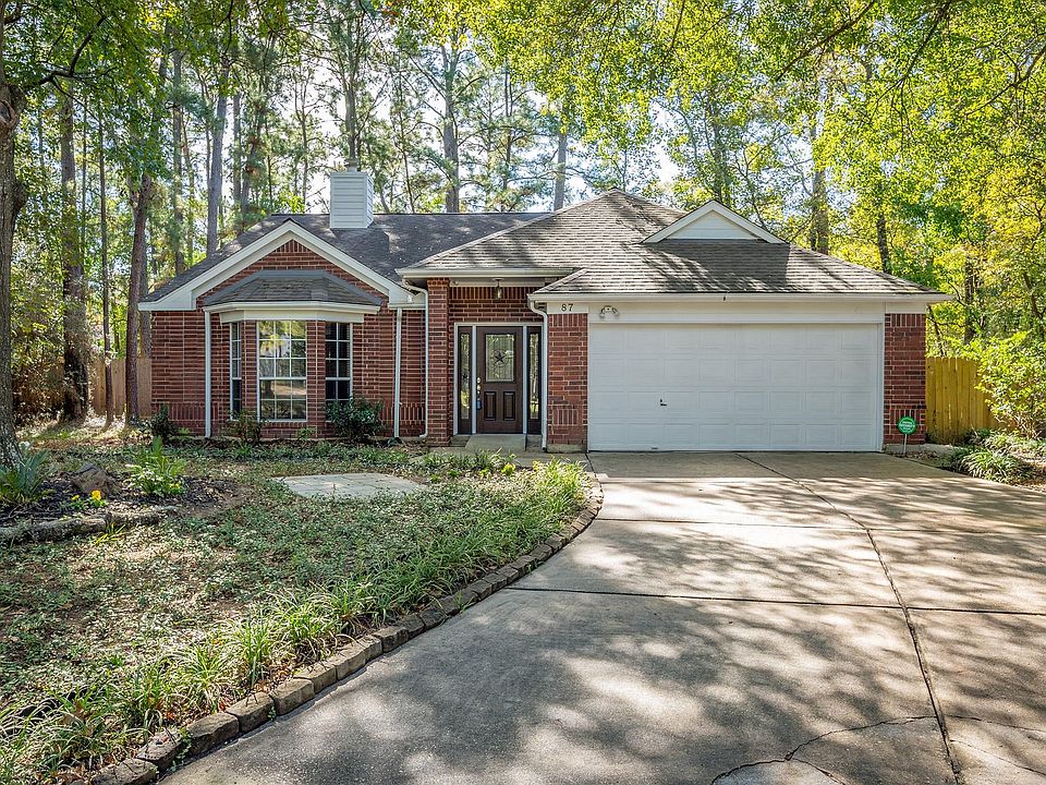 Great one story in the heart of a quiet culdesac. 3/2/2. Well maintained home with granite in kitchen and breakfast bar open to living room. Primary bedroom has high ceilings walk-in closet, and updated bath. Secondary bedrooms have walk-in closets. Washer, dryer, and refrigerator included. Huge backyard with large covered patio. Patio table and chairs included. Fabulous location just minutes from I-45, Market Street, Hughes Landing, the Pavillion, and TW Mall.
