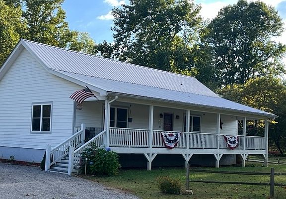 Everything you need and more!! Fully furnished and ready to move-in - Tusquittee Creek front home with one level open floor plan - 2 bedroom, 2 bath with an office/overflow room. Waterproof LPV floors, stone gas log fireplace, large dining area, enamel farm sink in kitchen, convenient pantry/laundry, full length screened porch with swing on the creek side. Full length open porch on front with lovely views of the Tusquittee mountains. Best of both worlds!