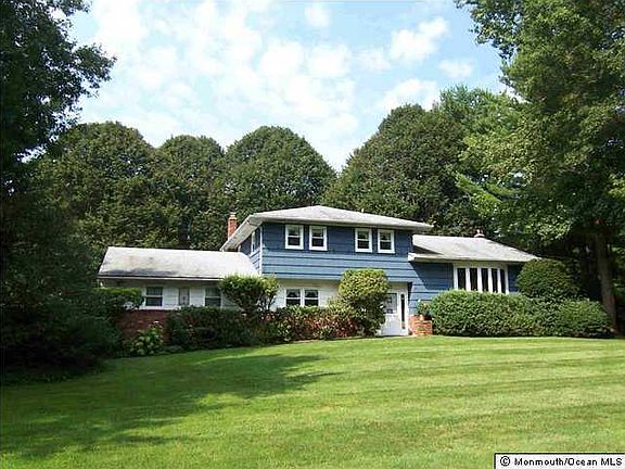 Spacious four bedroom, two and a half bath split-level home situated on over an acre of private park-like grounds with three patios and water fountain located in the heart of Lincroft. Hardwood floors in living room, dining room, master bedroom and two additional bedrooms. All new windows throughout. During the last ten years all of the major systems and roof have been updated. There is a corner wood burning fireplace in the family room perfect for entertaining family and friends.
