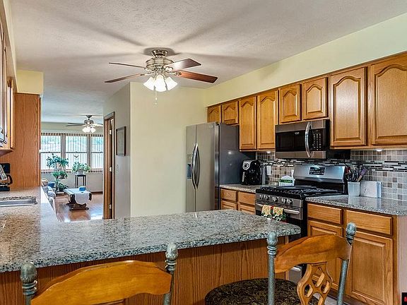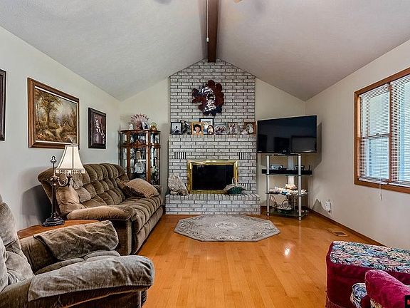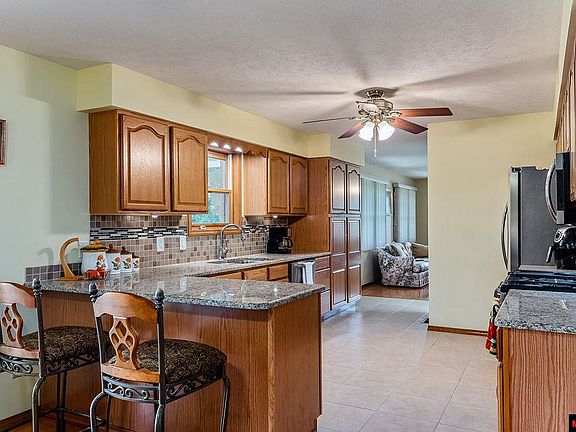 CHARMING BRICK HOME overlooking a private 6 acre m/l spring fed lake! Modernized kitchen with granite counter tops and newer back splash. Cozy living room with a vaulted ceiling, engineered hardwood flooring, and a fireplace with a gas-log. Family room off of the kitchen is great for entertaining. Covered deck overlooking the chain-linked backyard with a variety of mature fruit trees and view of the the lake. New shingles in 2020.