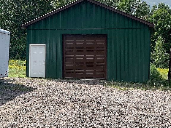 4-5 bedroom, 2.5 full bath, 3400 square feet total finished living space on 10 acre quiet lot. Master bedroom suite and two bedrooms, both with large closets on main floor. Also on main floor, full second bath with tub/shower and cedar wall/ceiling covering. Master bedroom has vaulted ceiling with cedar beams. Master bath has large custom tile shower, tile floor, custom tile two level vanity and separate room for toilet, entire bathroom finished in cedar. Living room/dinning room has vaulted ceilings with cedar beams. Large kitchen with hickory cabinets and coffee bar with its own sink. Mud room/Laundry room with two closets on main floor as well. Main floor has infloor radiant heat. Basement has walkout entry, one large bedroom with fire egress windows. Large second room could be another bedroom or second living room. Tons of closet space. House has been completely remodeled inside and out since 2010. Major upgrades and dates listed below. All rooms have been painted, have new floors & antique bronze light fixtures installed between 2012 and 2015. Solid pine six panel doors throughout house. Main level has all laminate wood or ceramic tile floors. 2010 - New security system with smart lock deadbolt on front door, monitored fire alarm system installed. 2011 - New roof, soffits and fascia, New hot water maker and mixing valves, oil burner, Ecomatic high efficient boiler control. 2012 - New siding, Pella wood windows, new doors, New master bathroom, New covered front porch, New stainless steel chimney, New 2nd bath. 2013 - New kitchen cabinets, countertop, stove, microwave, New 200amp electrical service. 2014 - New dishwasher. 2016 - New attic insulation. 2017 - New split AC units. 2018 - New refrigerator, New covered back porch. 2019 - New kitchen floor. 1740 square foot two bay garage, 12’x14’ doors with infloor heat has with two half baths and office area. 700 square foot unheated one bay garage with lighting and power. 1600 square foot 4 bay open front pole barn with lighting and power. Large gravel parking area.