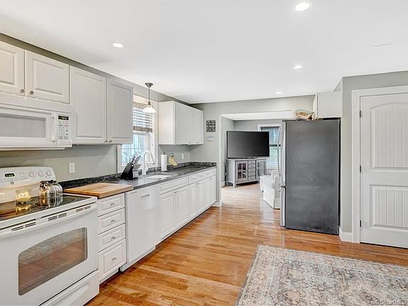 Adorable updated 2 bedroom cape with all the trimmings As you enter this home you can see the sellers attention to detail as you are greeted by the open floorplan with hardwood floors throughout and the gorgeous oak staircase leading to the upstairs bedrooms. The kitchen is adorned with soapstone countertops, a walk-in pantry and pocket doors leading to a beautifully refinished bathroom. Upstairs are 2 ample sized bedrooms and another remodeled full bath. There is plenty of space for outdoor time with family and friends in the private, oversized back yard. Sliders off the living room lead to a huge deck with room for table/chairs and grill and the kitchen offers another deck overlooking the back yard. Nothing to do but move in and make this your new home
