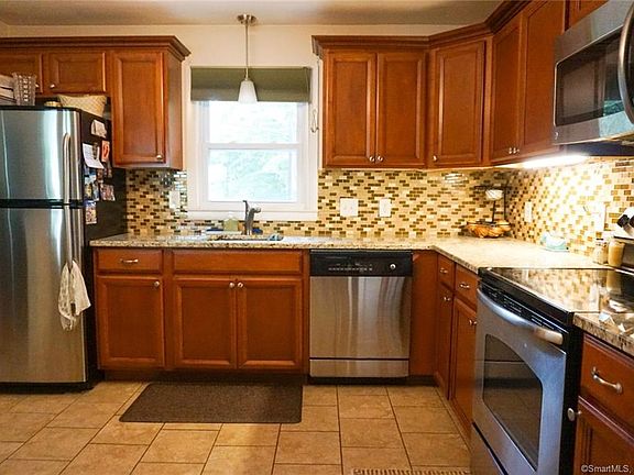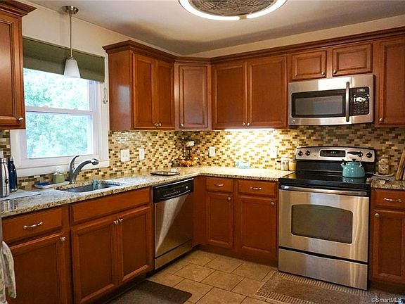 Located on a quiet street on the East side of Meridenjust add your personal touches and move right in! This whole house was renovated in 2013 with a new kitchen with granite countertops, new bathroom, hardwood floors throughout were refinished. To top it all off the roof and water heater are both under 10 years old! The walk out basement is partially finished and theres room to finish more..there is a pellet stove that keeps the basement warm. The backyard has plenty of space with a two tiered deck for entertaining. Close to access to highways, schools, shopping and restaurants. Solar panels are located on the back side of the house and keep the energy costs nice and low! Come and see for yourself, it wont last!
