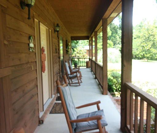 Very Private, Custom Built Rustic Brick Home situated on 4.66Acres mol. Beautiful large front and back porches.Custom oak stained cabinets in the kitchen, work island with a veg stainless sink, granite countertops, black appliances... nice bfst area off kitchen. Great room , vaulted ceiling, fireplace double french drs leading to a relaxing cov back porch. 3 Bedroom, 3 Bath.