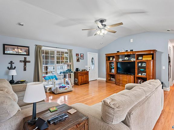 Check out this 3 bed 2 bath home just outside city limits of Guntersville. Very well maintained with fresh paint, newer fixtures, updated appliances, and no carpet. Hardwood flooring in living area with tile in kitchen. New LVP in bedrooms. New HVAC installed less than 2 years ago. Convenient to lake and Huntsville. Relax on back deck surrounded by privacy fence. Let’s make it happen!