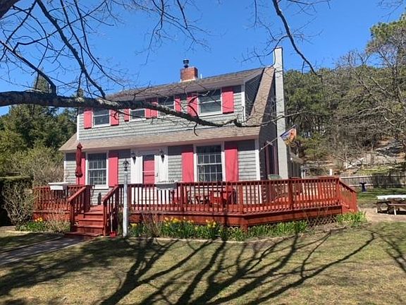 This family Cape style home is set on a 1.25 acre lot and is a perfect oasis which is sweetly and privately tucked into this nostalgic ''old Cape Cod'' neighborhood. It is just steps away from Cape Cod Bay - located in one of Wellfleet's most beloved beachfront areas. The main house offers 3 bedrooms, 1 1/2 baths and a great enclosed porch and large wrap around deck. Newer, oversized 2 car garage allows for private living space above with water views. This lot offers so many great outdoor spaces along with a large fenced in area, where the deck is located, which is a great spot for young children and pet to play. All can be thoroughly enjoyed as it is but also offers so much potential for increased expansive bay views and to be made your own. This is one not to be missed so stop by and experience the perfect bay breezes, enjoy the serenity and sunsets over the bay. This property is unique and offers so much.