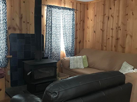 Includes a wood burning woodstove in the living room, hickory wood cabinets in the kitchen, walk in shower stall in the bathroom. Steel Roof all on 1+acres with federal land just west for hunting,.