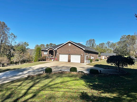All Brick, one-owner custom home on approx 5 acres. Quality built by a master bricklayer and builder featuring quioned brick corners, brick columns, and a brick archway entrance for curb appeal. Main level offers 2000sq ft with 3 br, 2.5 bath, formal dining, spacious living room, eat in kitchen w/ cherry cabinets, and inviting sunroom/den. Attached 2 car garage on main level(approx 600sq ft) Additional (approx 1000 sq ft) finished basement includes large family/recreation room, bedroom, half bath, abundant storage, and a second garage-(approx 1100 sq ft) ideal for workshop or additional parking. Quality construction throughout and plenty of space inside and out. A concrete driveway leads to an additional 2 car garage, (28x32) plus a storage shed/barn for equipment or hobbies. Property is fully fenced and includes 2 bonus lots that can provide rental income. Mini farm optional, owners have had up to 5 head of cattle (spring-fall) without need to buy hay.