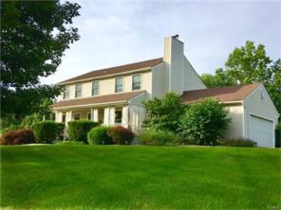 GARDINER-Stately maple trees embrace this very fine home in a perfect Gardiner location. Sweeping Shawangunk vistas w/glorious sunrises & sunsets are yours from this custom built Colonial home at the end of a quiet country road w/large rooms built for gracious entertaining. Natural expansive meadow insures nature while watching flowers bloom, woodland birds nesting & fawns playing in a picture perfect idyllic setting w/quiet walking trails. Landscaped gardens & an organic garden surround a beautiful in-ground pool, outdoor patio & huge deck w/built in seating. Interior offers well-lit rooms, master bedroom w/gorgeous tile en-suite, living room w/fireplace & large formal dining room. There is a den on the first level & a finished family room on the lower level w/laundry. This home offers plenty of closets & storage, a two car garage, shed, central air & vac plus generator hookup. Hiking & outdoor activities are all at your doorstep w/Mohonk & Minnewaska State Park just minutes away.