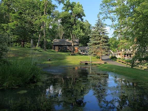 Enchanting country retreat, restored & updated. Southwest facing, walls of windows, 2.74 acres of sweeping lawns & pond with dock & fountain, newly rebuilt 2-story, 4-stall barn.
