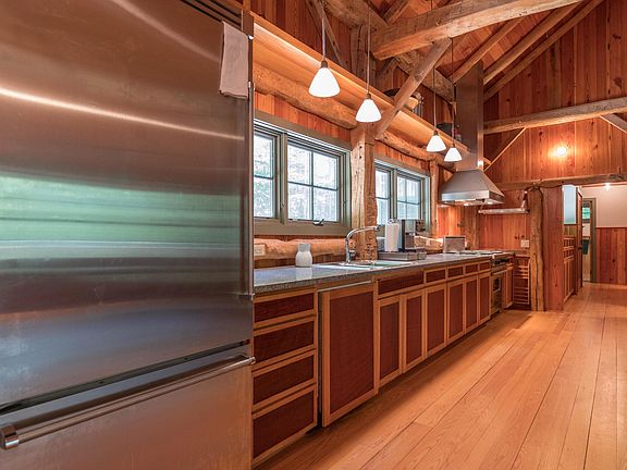 Privately nestled in Maine's lakes region, this stunning custom-built waterfront home displays masterful craftsmanship that combines a rare and unique attention to detail with luxurious comfort. Hallmarked by a commanding, two story natural stone fireplace, this artistically designed lakeside retreat was built over an 18th century carriage house frame from the inside out. Rustic undertones complement luxurious finishes throughout the home. The inviting floor plan connects the brilliant sunroom and library to eat-in kitchen, to the expansive red cedar deck. Space is plentiful and includes 2 bedrooms and an office on the main level, while the lower level hosts an additional bedroom, with a kitchenette, den, and cedar sauna. Adjacent to the home is a barn also constructed using 18th century frames featuring a magnificent stone fireplace. Boasting over 200' of owned water frontage on 3 acres, escape to your very own lakeside paradise, perfect for year round relaxation and entertainment!