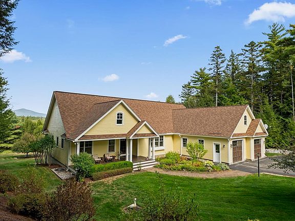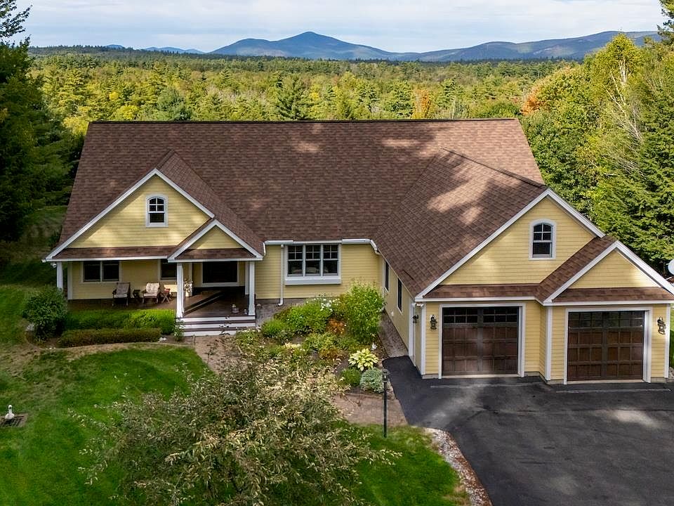 PRIVATELY SET ON TWO ACRES WITH MOUNTAIN VIEWS, this 3,400+ sq. ft. custom built contemporary, thoughtfully conceived and maintained by the current owners, offers the ease of single-level living. The main floor spans over 2,600 sq. ft. featuring an open layout with a well-appointed kitchen, dining area overlooking the mountains, and a spacious great room opening to a screened porch. Two primary suites with bath and private deck anchor each end of the home. The walk-out lower level adds flexible living space with a third bedroom, ¾ bath, and a studio that could be expanded into a fourth bedroom. This level affords generous storage and potential for future expansion. A heated, attached two-car garage provides year-round convenience and storage above. Radiant floor heating throughout offers comfort and a standby generator is ready when the need arises. This home is masterfully tied into the landscape with well-tended grounds, all in a convenient location close to the Mount Washington Valley, multiple ski resorts, the scenic Swift River, and miles of trails at the foot of the National Forest.
