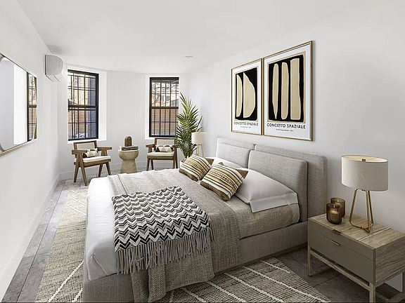 Welcome to the garden apartment at 87 Moffat Street! This newly renovated 2 bedroom, 2 bathroom apartment offers a spacious layout. You enter on the ground floor to a foyer area with storage space and a closet opposite the kitchen. The fully equipped kitchen contains ample storage space and and updated stainless steel appliances including a dishwasher. The kitchen is open to a large living/dining area to the front of the apartment which is flooded with natural light from 3 large windows. To the back of the unit, 2 large bedrooms can accommodate queen/king sized beds and additional furniture and each has a full closet. Further amenities include split units in each room, in-unit washer/dryer, and a private outdoor space. 87 Moffat Street is a professionally managed building providing residents access to an online portal for rent payment and maintenance requests, as well as a dedicated superintendent. The building is located in Bushwick with easy access to countless local bars and restaurants. Train access is close by with the J train at Chauncey Street Station and the L train at Wilson Avenue. Please note that some photos have been virtually staged.