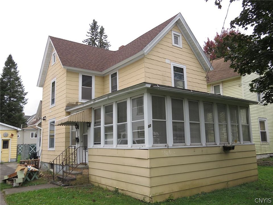 Affordable village home with first floor bedroom, spacious kitchen, breakfast room, living room and dining room. Second floor includes two bedrooms and the full bath. The oversized garage has a finished interior and has room for your stuff and the car. The large back yard is fenced and includes a concrete patio.