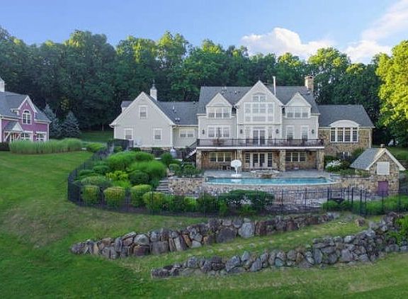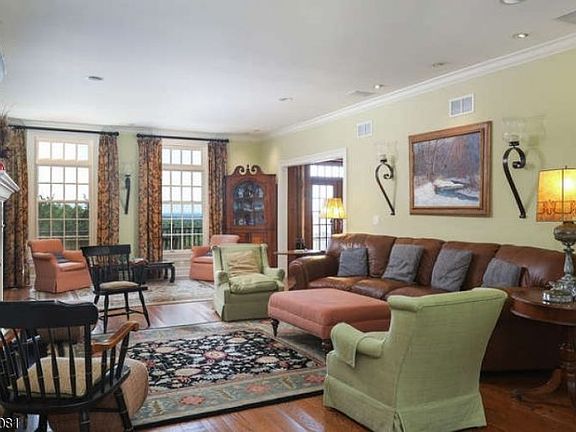 Among the estate homes that dot the beautiful rolling hills of Mendham Twp is a discreet half-mile private driveway that leads to an exceptional 2005 new construction Custom Home replete w sparkling in-ground swimming pool, detached carriage house w 2nd floor great room, 11.8 picturesque woodland acres, mesmerizing panoramic views of the surrounding countryside, and the pedigree of a Far Hills mailing address. The main house comprises 12 rooms, 5 bedrooms, 3 1 2 baths, 2 fireplaces and wood-burning stove, captivating great room, designer gourmet kitchen w breakfast room, lower level w walkout, recreation and exercise room- this prestigious home offers an exceptional floor plan and perfect flow w nearly 6, 000 sq ft of luxury living space. A truly compelling mountaintop retreat adjacent to the 112 acre Mosle Preserve