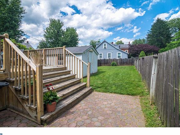 This wonderful borough twin has been updated and well maintained during ownership. Enter from the relaxing covered front porch into a bright, cheery home featuring high ceilings and open main level floor plan. The many windows let the natural sunlight brighten and warm the space while the floor plan provides the opportunity for many layout options. The front living room is highlighted by the gorgeous hard wood floors and tasteful trim that is found throughout the home. A spacious dining room with a mid-wall bump out offers a nice place for those special meals with family and friends. The eat-in kitchen has been updated with tasteful cabinetry and beautiful granite counters. There is a large pantry for the dry goods and plenty of shelving for those bigger cooking items. A large window cutout offers views into the back family room where you will find a half bath and large coat closet. The over-sized double doors leading to a spacious back deck that overlooks the fenced in backyard. Outback you will also find a paver patio for the grill, storage shed and plenty of room for the gardens and open lawn area for enjoyment. Back inside and to the second floor you will find the original hardwood floors that have been refinished and a remodeled full hall bath with tile floors and tile tub/shower surround. There is a spacious master bedroom with double door closet and two additional bedrooms, each with ample closet space. The third floor is accessed from a dogleg staircase off the hall leading to two additional rooms, both with hardwood floors and closets, offering the potential for two additional bedrooms. Completing this home is a full basement with laundry area, utilities and room for storage. The beautiful tree-lined streets and sidewalks are ideal for walks around town and all the local attractions. Low taxes, great location and move-in ready!
