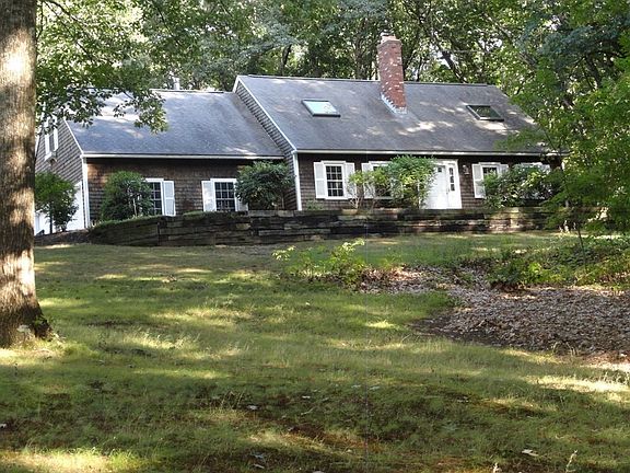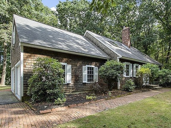 Nestled among tall oaks and mature perennials, this Cape-style home is unique, beautiful and private. There’s a 2-level heated garage/barn, workshop/studio and a 44x20 in-ground pool. Inside the home, built-ins and custom features add elegance and distinction. Family & friends can relax at the spacious, bi-level kitchen island with granite countertop. Matching custom cherry kitchen cabinetry completes the look. The adjoining dining room easily fits a table for 10 and boasts an entire wall of built ins. The living room has built-in bookshelves, cabinets, crown molding, wainscoting and a brick fireplace. 1st floor boasts a full bathroom and a 13x11 office/guest room, which has been used as a bedroom, with a wall-length closet. On the 2nd floor, the main bedroom has a walk-in closet, skylights and access to a 23X14 office/bonus room with its own staircase to the garage. There are 2 additional bedrooms upstairs and full bath. All carpeting is new, rooms are freshly painted.