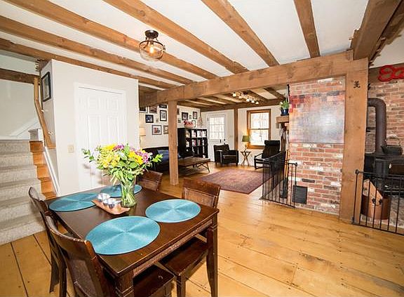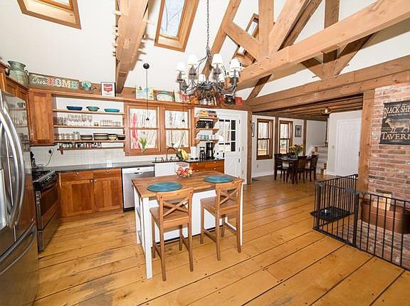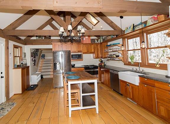 Authentic Maine post & beam construction! Fabulous Gambrel colonial set on private 3 acre lot in the heart of Ridgefield's horse country. Stunning kitchen w/custom cherry cabinetry, honed granite counters, stainless appliances. Wide maple hardwood floors throughout. Open floor plan w/exposed brick & beams, vaulted ceilings. Wood burning stove in kitchen & wood burning fireplace in living room. Main level bedroom & full bath. Upstairs features 2 bedrooms & gorgeous hall bath w/clawfoot tub & separate shower. Huge family room including half bath. Central air. Circular driveway, expansive backyard. New automatic propane fueled generator, new roof 2013, new deck, exterior newly painted. Scenic road close to NY line & convenient to interstate