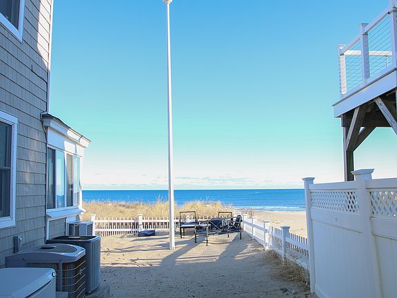 WATERFRONT ON THE SAND nestled by dune grass with sandy path to Atlantic Ocean. Quintessential beach house with sand box for front yard with beach furniture & a hot tub. Imagine the fresh salt air & the sound of the waves lapping at the shore while having a cup of coffee at sunrise. Lots of room for family & friends w/ parking for 9 cars+/-. The first level has a sunroom the length of the front of the home looking at the Atlantic Ocean! 1st floor has 2 bedrooms, 3/4 bath, kitchen, dining, living area & sunroom. 2nd floor has 2 waterfront bedrooms w/ fantastic views, 2 more bedrooms, full bathroom & pull-down attic area. Hardwood flooring in bedrooms, dining and living area. Knotty pine walls in most rooms have been painted white & bright. Kitchen with built in microwave, white knotty pine cabinets, refrigerator, glass top stove, Formica counter, dishwasher, disposal & trash compactor. The home has a large full basement w/interior stair to laundry area with 2 sets of washer & dryers, 2 refrigerators, 1 stand up freezer and 1 stove. Lots of storage in a full basement for all your beach equipment. Walk along the sandy beach & the Atlantic Ocean going south for miles into Massachusetts. Low maintenance vinyl shake siding & vinyl fencing high on the sides & rear lower on the ocean side. 2 Forced hot air gas heating systems in the main house w/ electric heat in the front sunroom. Central AC on 1st & 2nd floor & free SEABREEZE! Sunroom AC units. Great entertaining home!