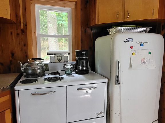 Getaway from it all...here is an opportunity to enjoy weekends in the woods. An affordable seasonal cottage with 2 bedrooms, 3/4 bath and kitchen with combination dining and livingroom. The enclosed porch has a separate entrance and creates additional useable living space. New replacement windows a new roof, and well point. Selling furnished and for you to move right in. Neatly tucked back from the road does enhance the feeling of privacy. Conveniently located within 1 mile of the town beach on Lovell Lake and all town services that are nearby. The yearround access on a town maintained road is a plus for those hoping to own a "camp" just add some heat and you could be on the snowmobile trails this winter.