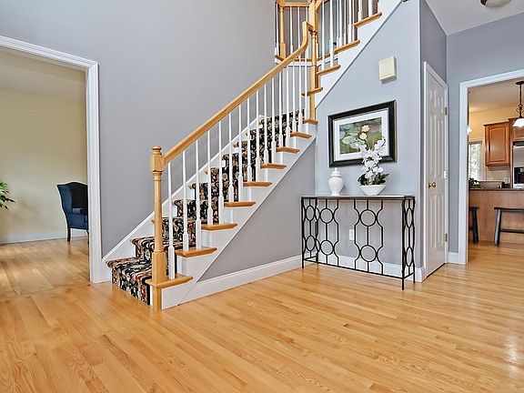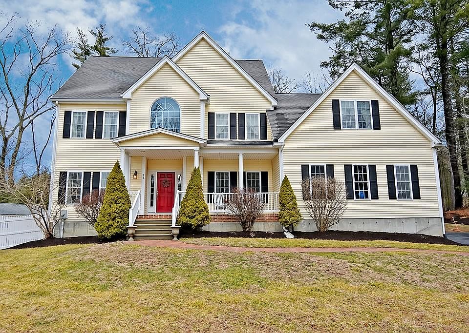 Beautiful colonial with front porch situated on a quiet country road located on a well landscaped 1.4-acre lot. Open and spacious interior, two-story foyer, eat-in kitchen with granite counters, center island and stainless steel appliances opens to the great room with fireplace. Other rooms and amenities include front to back living/dining room, first-floor office, hardwood flooring, crown molding, french doors, central AC. Spacious bedrooms on the second level including the master suite with a walk-in closet and master bath with shower stall and a soaking tub. Large finished lower level perfect recreation/family room and an additional room for an office or gym. Private backyard w/ stone walls, fish pond, fire pit/patio area, gazebo and steps away from the inground pool.