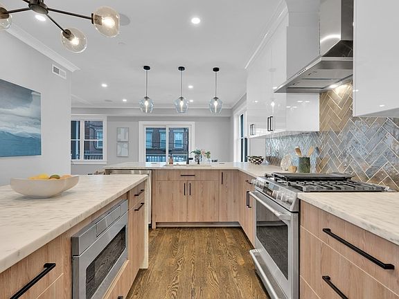 Prepare to be wowed as you step inside this meticulously renovated condo in the vibrant Pondside area of Jamaica Plain! The interior boasts designer finishes with smart home technology, crown molding, solid wood trim and hardwood floors. The open floorplan seamlessly connects the living, dining and kitchen areas. The high-end chef's kitchen is complete with marble counters with waterfall edge, a pantry and GE Cafe smart appliances. Luxurious bathrooms feature glass shower enclosures, designer tiles with a modern aesthetic, creating a spa-like atmosphere. The primary bedroom features a walk through closet and custom storage. Additional deeded storage in basement. The refinished exterior adds to the home's curb appeal with new landscaping & off-street parking available. Proximity to Centre Street & Whole Foods offer a range of food, dining & shopping, plus public transportation options on the bus and T. You'll love the nearby walk/jog trails around the Pond, Arboretum & Emerald Necklace.
