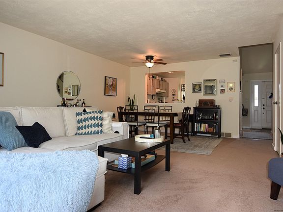 If easy living is what you desire look no further. This two-story Townhouse features two bedrooms, two full baths, and laundry on the top floor. On the ground level is an eat-in kitchen, a dining area with an open concept living room, fireplace, and Central AC for comfort in the summer months. Just out the back door is a spacious outdoor private patio. HOA fees are $340.63 which includes snow removal, trash pick-up, exterior maintenance, lawn care and water. Personal parking spot and ample guest parking as well. Conveniently located minutes from uptown & downtown Kingston, Saugerties, and a short drive to the Village of Rhinebeck.
