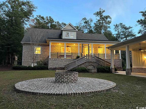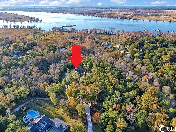 Southern Elegance on 1.86 acres in Pawleys Island, SC nestled in-between the ICW/Waccamaw River and the Atlantic Ocean. Beautiful covered porches with basketweave brick pattern flooring and a double custom wood arched front door with glass! Inside you'll find the most beautiful Southern Custom charm with ship lap walls and ceilings and Knotty pine flooring throughout. Custom cabinetry, solid surface countertops and kitchen/pantry storage! Electric blinds in the great room and kitchen! Construction is SOLID! Soundproofing insulation in walls, flooring and ceiling. Crawl space is encapsulated and concrete. The Carriage House has a 4th bedroom/bonus room with full bath and kitchenette as well as a LARGE office, gym, Mother In Law's suite PLUS two plus car garage and STORAGE STORAGE STORAGE. Oh, why live near the water without the convenience of your very own deeded boat slip with electric and water. Sunset cruises on the Waccamaw River in your future! Time to take back relaxation and move to Pawleys Island, SC.