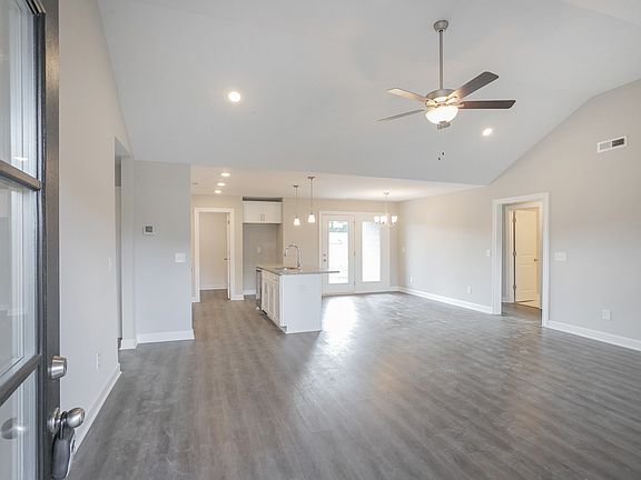 New construction, all brick, single story, zoned 3 bedrooms/2 baths. Great floorplan with LVT flooring and tile in bathrooms/laundry room. Vaulted ceiling in living room is open to the kitchen and dining area. Kitchen has granite, large island, and walk-in pantry. Bathrooms have granite; primary has double vanity, huge walk-in closet, and separate shower/soaking tub. Cozy carpet in the bedrooms. Covered front and back patios. Stainless steel appliances include stove, dishwasher and microwave. Fiber optic internet available; home has natural gas HVAC and water heater. No HOA. Builder/seller will pay 2/1 buy down & additional $5000 in closing costs if using preferred lender & title company.