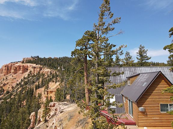 A really special property comes up for sale every once in a while, and this one sure has a special feel to it. Situated right on the rim at Strawberry Point, your view from two of the bedrooms, two of the bathrooms, and the dining nook is spectacular. Zion National Park in the distance, with pink cliffs and a swath of verdant forest below is a sight to behold. One main floor bedroom with a propane stove for warmth & ambiance, with adjacent 3/4 bath. Living space features rock faced wood fireplace. Upstairs, two large bedrooms w/3 beds sleep up to 6. Shared, 3/4 bath. Sold furnished. Large uncovered front deck and uncovered back deck literally on the rim. This one you have to come see! Lots of warm tongue in groove wood inside- gives a cabin in the woods feel. Powered by solar & battery bank. Propane refrigerator & stove. Double propane tanks are rented. Generator in the garage; garage is heated by wood burning stove. Electric service is nearby in the road, if desired, buyer could obtain quote to connect. Kane county water meter is installed. Sellers snowmobiled in to the cabin in winter and had many enjoyable moments during snow months. Come make this property yours today!