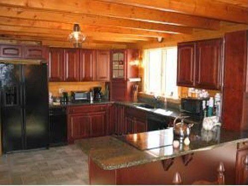 This Katahdin Cedar log home is privately set on 1.52 acres in a pastoral location just 1.5 miles from Rte 4. The homes main living area is bright and airy thanks to the soaring cathedral ceiling whose center piece is a floor to ceiling field stone fireplace with polished granite hearth and mantle. Windows galore allow the sun to stream in and the attached, screened porch offers a comfortable spot to enjoy the sounds and sights of nature. The fully applianced kitchen has Brazilian butterfly green granite counter tops and the adjoining dining area opens onto a side deck. Three bedrooms include the master bedroom with its en suite bath with jetted tub, shower and tile floor and huge, walk-in closet. The light, open loft could be your cozy get-away room or a craft work area. The basement is roomy, dry and has finished office space, exercise room and 1/2 bath which is plumbed for a shower. Two car heated garage has openers and direct entry to home. So much more awaits you here!
