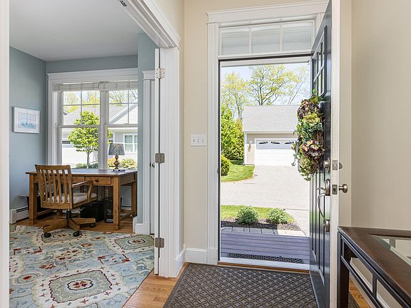 Tucked in 90 acres of conservation land with walking trails, you will find this well landscaped, picturesque community. Single level living condo offers 3 bedrooms, 2 1/2 baths, and a sun filled open concept kitchen, dining and family room. Large primary bedroom with tiled shower and walk-in closet. Guest bedroom with full bath/shower. Same bathroom is adjacent to another room that could be used as a home office, den, or another bedroom. Also on first floor, is a half bath and laundry room. Open staircase to the basement which features a finished space that could be used as an additional family room or bedroom. Also, an unfinished basement area with lots of possibilities. Private back yard with patio. A Clubhouse with a community room with a fireplace, a kitchen and a fitness room. Conveniently located close to shopping, dining. interstate 95 & 295, 10 minutes to Portland.