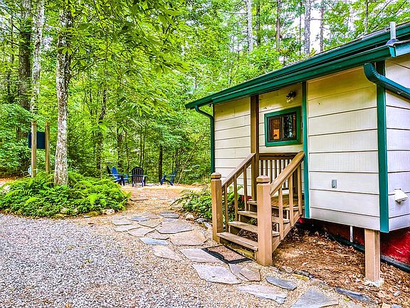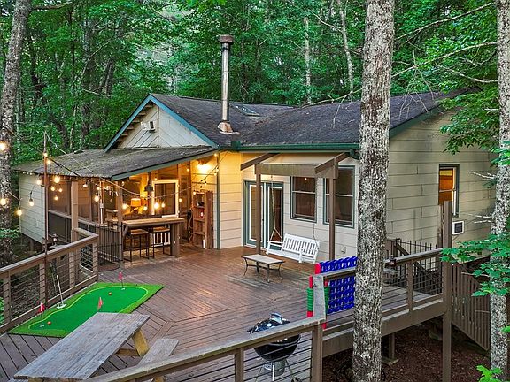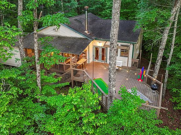 This perfect cabin gives you all the tree house vibes! Nestled among the gorgeous Blue Ridge tall pines, you get an instant, peaceful feeling when you relax on the expansive back deck watching family & friends play and enjoy the natural surroundings. Featuring three bedrooms and two bathrooms, this cabin in the woods offers guests everything one would need to get away from the stresses of everyday life. The Owner's Suite on the main floor features an en suite bathroom and convenient access to the back deck for your morning coffee. Stainless steel appliances, & coffee bar complement the kitchen. The wood-burning stove creates a warm ambiance and transports you back in time. With both an open deck and covered screened porch, you will be able to spend time outside no matter the weather! There's plenty of parking, a firepit area and storage. Close to all of the attractions and amenities of Blue Ridge, this home makes the perfect weekend getaway or Airbnb/VRBO investment.
