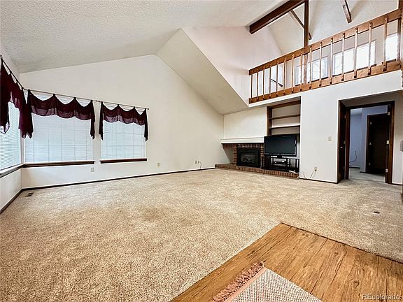 Sunridge welcomes you to a contemporary designed loft-style home. The home has a unique open space feeling letting in the sunlight. A great room with a fireplace, a private patio, and an oversized double garage gives this home the features of a larger and more expensive residence. While still providing privacy and amenities provided by the HOA. The loft overlooks the living room and has extra space above the kitchen. A designed feature in the staircase wall allows adding a piece of art to show off the space between the kitchen and living room. The living area has large windows and a skylight which lets in extra light. There is a gas fireplace that heats the area on cozy winter days in the living room. Easy access to two large bedrooms on the main floor is near the kitchen and living space. The master bedroom includes an attached bathroom and a large walk-in closet. A second bath is located in the center of the main floor for easy access for guests to use. The layout flows easily into a dining area with a connection to the outdoor patio. The basement area has an extra space ready to use for entertaining or office. A finished laundry room is located in the basement next to the utility room which includes a large freezer. Additional extras are storm windows throughout the home. Sunridge is located near the Aurora Town Center, UCH, and Buckley. The light rail connection is nearby with access to major highways which makes it easy to commute. If you like trails the short walk to the Highline Canal is truly convenient. The community pool is beautifully maintained during the season and there is a community garden space to grow your vegetables or flowers. The clubhouse is available to rent for your events. This community is the "Diamond in the City" place to live. Note: The city of Aurora is currently installing new water lines that will bring higher water pressure into the subdivision.