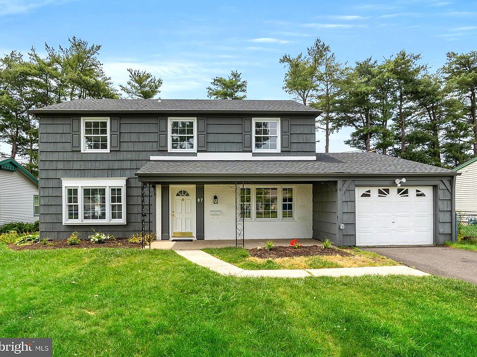 This 3 bedrooms, 2.5 bathrooms colonial style home in the desirable Buckingham area of Willingboro Township has been completely renovated from top to bottom, inside and out. It boasts a new roof, sewer line, mini split air-conditioning systems, replaced interior doors and windows, and so much more. Upon entering one experiences the flow of an open concept floor plan with a large living room to the left that opens to the remodeled dining and kitchen areas. To the right is a formal living room and remodeled half bath that leads to the kitchen with a first-floor den or office secluded off to the side. The freshly painted neutral walls, new luxury vinyl floors, and all new interior doors and hardware all provide a high end, move-in ready opportunity. The second floor offers three large bedrooms. The primary bedroom en suite features a renovated bath with two closets, one being a walk-in.The easily accessible hall bathroom features a soaking tub and classic fixtures, tile, and cabinetry. Each bedroom has ample closet space and new carpets. As for outdoor living, the backyard is spacious and fully fenced with a concrete patio, perfect for barbecues and entertaining. The front entry way includes a covered front porch, offering a peaceful space to enjoy the outdoors. This home offers an easy commute to Philadelphia, McGuire Air force base, Fort Dix, Trenton and Shore Points.