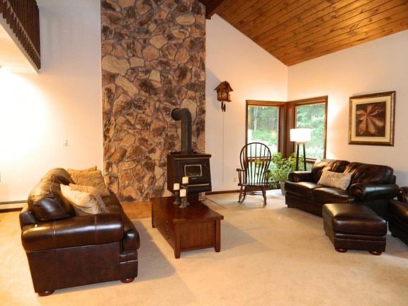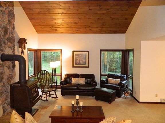 Fantastic Contemporary nestled on 23 acres offers vaulted ceilings, skylights, plus stunning kitchen with stainless steel appliances and breakfast bar with granite counters. Gleaming hardwood floors, remodeled baths, huge master bedroom and bath with private deck. Great hot tub room and open loft, three decks, tons of windows for natural light and views of private wooded setting.
