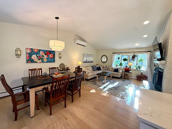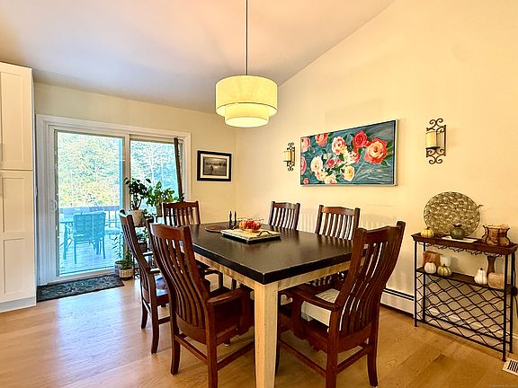 Located on a peaceful three-acre-plus lot in Colchester, this lovely property begins with a sizable front yard and concludes with a tranquil, thoughtfully designed landscaped backyard, complete with vegetable gardens, an above-ground pool, perennial flowers, and ornamental trees and bushes. The home offers open plan living that has upgrades and updates making this a turn key opportunity. The open plan Livingroom, Diningroom and Kitchen have vaulted ceilings that provide a fantastic flow and levity. There is a fireplace to accentuate the ambiance. There is a deck off the dining space that overlooks the expansive backyard. There are three bedrooms in use, with the primary bedroom having an en suite and a private deck, a wonderful family room that is currently being used as a playroom with both a closet and a window, and features a cozy wood-burning stove. This room can easily be used as a large bedroom/guest room or den. This raised ranch has a large two-car garage and ample parking in the driveway. Situated on a sprawling 3.37-acre lot with a beautiful stone wall in front that add to the curb appeal, this home is a fine example of country living in the Westchester area of Colchester. Upgrades and improvements include: Exterior: Front Stoop/Door, Garage Doors, New Roof Chimney Rebuilt to Roof Line/Oil Furnace chimney lined New Vinyl Siding, Sliding Glass Doors upstairs and downstairs New Garage Windows 2nd Bedroom Windows replaced Interior: New Hardwood Flooring throughout New Kitchen with a Farmhouse Sink, New Cabinets, Countertops, and backsplash. Lighting: Bathroom Fans(Smart Device Control) Recessed Lighting(Smart Devices) New Entry Chandelier New Furnace New Water Tank Master Bedroom Fan Fresh Paint Installed Pull Down Stairs for acces to attic. POI's include:Westchester MarketPlace, Priam Vineyards, Airline Trail State Park & Colchester Spur, Day Pond State Park andColchester Recreation Complex (RecPlex).