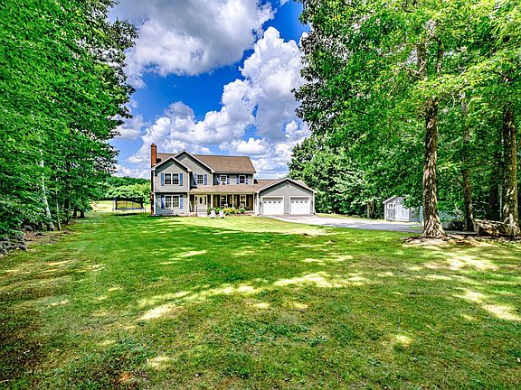 BIG AND BEAUTIFUL plus VIEWS! Lovely setting for this 4 bedroom, 2.5 bath colonial on 2.47 acres. SS appliances & granite kitchen, formal dining & living area w/gas fireplace, plus a private office on the main level. A breakfast nook leads to sliders out back. Wait until you see this yard! Pool/hot tub/deck provide gorgeous sunsets! All bedrooms are upstairs with a primary en suite, 3 more bedrooms and full bath. Lower level is completely finished, central vac, shed and more! Too much to list, come look!
