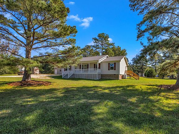 Exceptionally maintained Country living at its best and close to the city. Ranch home built in 2021. Nicely situated on almost an acre of land. Rocking chair front porch. Rear grilling deck and Side entry to laundry/utility room. Featured with 3 bedrooms and 2 full baths. Large master bedroom with huge walk-in closet and spacious master bathroom with enormous walk-in rain head and wall head shower and double vanities. Large kitchen includes farm sink overlooking the fenced backyard, gas range, microwave, eat at center island and refrigerator. Oversized laundry/utility room includes Freezer, Washer/Dryer and additional sink. Big family room with stand-alone fireplace. Additional Luxury Vinyl Flooring already on site for new owners to replace carpeted areas. Almost an acre lot has large (39' x 22') detached garage with 3 bays, and a separate utility building. A must see.