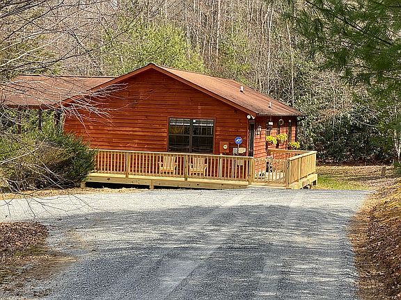 RUSTIC RETREAT! This is a 2BR/2BA , LIKE NEW cabin, on 1.26 acres w/ one large and one smaller creek bordering 2 sides of the property. Setting is very private w/ large hardwoods and a level yard for kids or pets, new french drain just installed. Fully renovated with all new stainless appliances, new carpet in the bedrooms, entire interior has been repainted and all hardwood floors have been refinished as well. A new french drain has also just been installed, excavation has been done to allow better drainage around the home. Centrally located between Murphy and Blairsville, Ga. Only minutes to the four lane and would make an excellent full time, vacation, or retirement home.
