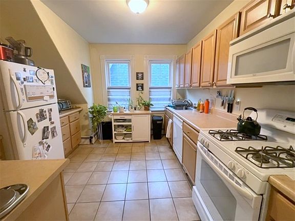 AVAILABLE 9/1 Four room two bedroom apartment on the top floor of a three family home. Bedrooms are both large and the living room is very large. Kitchen is big enough for a small table, but not really a full eat in kitchen - plenty of room in the living room for a table. The kitchen has a dishwasher, disposal, built in microwave, gas stove, and nice modern cabinets + fridge. There is a very nice back deck and just inside the entry there is a very large common closet for extra storage. Both bedrooms have closets. The bathroom is fully tiled with classic mid-century pink tile in good shape + there is extra storage in the bathroom. The laundry is on the first floor at the base of the stairs right inside the front entry - coin-op. There is one garage parking spot included. Very close the the new green line stop that is almost finished at walkable to Union Square. Several good bus routes close by to Lechemere, Kendall, Davis, Harvard, etc.(Reference #142695)