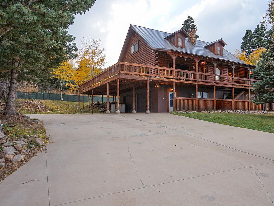 EVER WANT TO GET AWAY!!!! This 3 story 3,150 sq ft fully furnished custom log home with oversized attached 2 car garage is on 6.1 acres in the tall pines and aspen. Four bedrooms, plus a bonus bunk room, spacious dining room, and many walls of windows bring the beauty of the forest into your home. Features include a gourmet kitchen, 3.5 bathrooms, and excellent views. This stunning home in the tall pines is at 9000 ft elevation which means you have wonderful cool summers and spectacular winters filled with snowmobiling, cross country skiing, and hiking in the national forest just a few blocks away. Excellent Elk hunting, lots of wildlife and birds to enjoy. Large 4 seat Polaris with snow cat tires and tracks can be purchased outside of contract. Great for hunting in the Forest; the