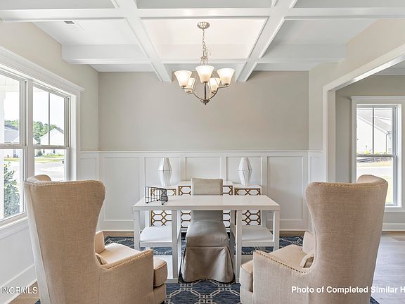 Hardison Building is currently in the process of crafting a remarkable new home known as the Saratoga plan within The Sanctuary at Forest Sound. This home spans approximately 2500 square feet and enjoys a secluded position on a deep homesite, situated across from the serene pond. Upon your entrance, you'll be immediately captivated by the dining room's aura of sophistication, making it the ideal setting for hosting gatherings. The seamless flow then guides you into a spacious living area, where a welcoming gas fireplace takes center stage, and an adjacent kitchen is a true delight for any home chef. The kitchen itself is a showstopper, showcasing exquisite quartz countertops, modern stainless steel appliances, a generously proportioned center island, and an inviting breakfast nook that leads to a covered rear porch - a perfect oasis for your morning coffee or evening relaxation. The first floor has been thoughtfully designed for convenience and includes a strategically placed half bath, a functional laundry room, and a handy drop zone, all conveniently situated just off the two-car garage. Moving to the upper level, you'll discover a wealth of space to meet all your household's needs. The primary suite offers a haven of luxury, boasting a tray ceiling, two spacious walk-in closets, and an opulent bathroom complete with a double vanity, a walk-in tile shower, a private water closet, and a linen closet. The second floor is completed by three additional bedrooms, one of which has its own private en-suite bathroom. This home places a strong emphasis on convenience, incorporating a second laundry room on the upper level, water-resistant laminate flooring for lasting durability, a natural gas water heater for efficient operation. The Sanctuary at Forest Sound enjoys a central location in the heart of Hampstead, offering the convenience of being just 15 minutes from Wilmington, Surf City, and Topsail. Additionally, it's only 1 mile from the Intracoastal Waterway.