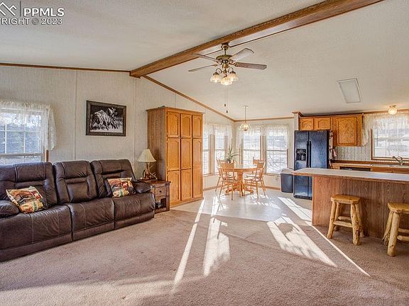 Single-story living offers ease and convenience in this lovely 3 bedroom, 2 bathroom rancher in the Trout Haven subdivision. Open layout with kitchen/dining combo and 2 stool breakfast bar. Cozy up on a cold day next to the wood burning fireplace in family room with stone profile and hearth. Enjoy the views of Pikes Peak from your Dining room windows. Unwind from a long day in the large Master bedroom with walk-in closet and adjoining 5 piece bath. Home includes 2 additional bedrooms, a full bath and laundry room. Large south facing front deck perfect for entertaining and rear deck overlooking the rear of your 1.29 acre lot and surrounding mountains. Large 900 sq.ft 2 car detached garage with ample amount of workshop space. New roof on home and garage in 2021. Easy commute to Woodland Park or Colorado Springs and easy access to tons of Outdoor activities including World Class skiing. This is the one you have been waiting for to call home.