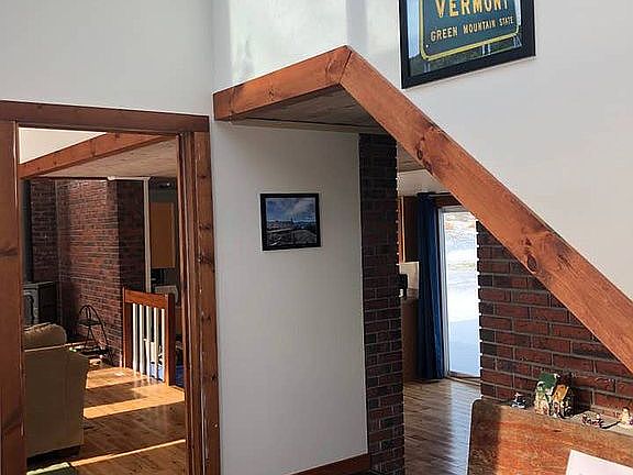 1,943 square foot country property on 5.94 acres with a 4-stall horse barn and separate 2-story workshop located in highly coveted school district. A short drive to Burlington, Lake Champlain or mountain skiing, biking and hiking. Contemporary home with 1 ½ car attached garage. Vaulted ceiling with skylight provides a sunny, open floor plan. New hardwood floors on the main level and upstairs. Slate entry mudroom perfect for storing outdoor gear. Cozy Hearthstone woodstove in the living room which offers gorgeous mountain views and opens into the kitchen and spacious dining room making entertaining a breeze. A large back deck off the kitchen/dining room provides even more entertaining space. The first floor also includes a tiled 3/4 bathroom with shower, laundry and a separate utility room with extra storage, forced air furnace, new on-demand hot water system and access to basement crawl space. Upstairs you'll find 2 bedrooms including a spacious master suite with walk-in closet and an adjoining bonus room that would be great for a nursery or office. The main bathroom on the second floor is also tiled and offers a double vanity, linen closet and tub/shower combo. The horse barn features 4-stalls, a tack room, hay loft, water, lights, electricity and 4 acres of fenced paddock. The detached 2-story workshop features an oversized garage door with plenty of storage for car, boats, campers, recreational toys and lawn equipment.