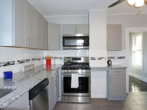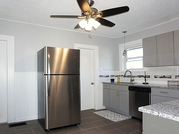 - Kit Dscrp: Ceiling Fan(s), Countertops - Stone/Granite/Solid, Flooring - Stone/Ceramic Tile, Stainless Steel Appliances, Countertops - Upgraded, Remodeled, Exterior Access, Gas Stove, Lighting - Pendant, Beadboard