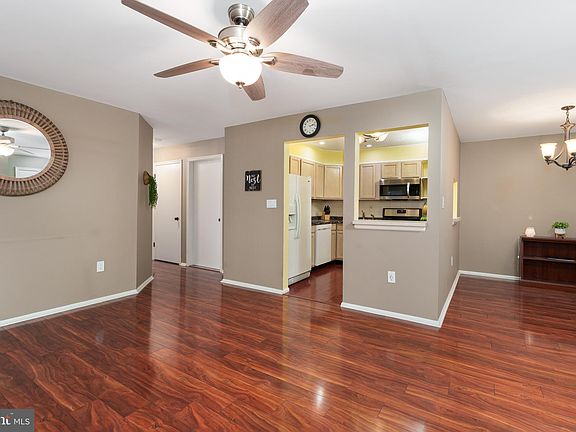 Plentiful upgrades, ranging from big to small, make quite an impact at this Society Hill II condo. Over the last three years, floors were replaced with lustrous and durable wood-grain laminate, ceilings were smoothed, walls were freshly painted, and closets were customized with handy shelving. Thoughtful finishing touches, like new vents and light switches, add to the move-in ready appearance. Not only is the Hamilton community highly desirable for its convenient park-adjacent location near daily conveniences and major transportation routes, the unit itself is as easy as can be on the first floor with no stairs to navigate and a covered patio, perfect for casual meals and morning coffee. The interior is delightfully open with a nicely sized kitchen that looks into both the dining alcove and the bright living area. Both full bathrooms are pleasantly neutral, one of which is privately situated within the main suite, along with a generous walk-in closet. Use the second bedroom however you wish - from home office to restful reading spot to guest accommodations. Be sure to explore Society Hill’s shared amenities, including tennis courts, a playground, gorgeous green spaces and a pool, where neighbors can socialize or just quietly unwind. If you seek convenient, carefree living, the welcoming community of Society Hill II is an easy choice!