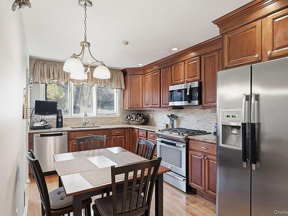 Welcome to this charming townhouse featuring one bedroom plus a loft, located in the sought-after Village Green community! The home boasts a modern eat-in kitchen equipped with stainless steel appliances, granite countertops, and a dining area. You'll find a bright living room, hardwood floors as seen, a spacious primary bedroom with an ensuite bathroom, a cozy sleeping loft, a finished basement with storage space, and a deck for your outdoor entertaining. Additionally, there's a one-car garage, along with plenty of guest parking. The community offers amenities such as a pool, playground, and a community room with a kitchen. This townhouse is ideally situated near restaurants, shops, public transport to NYC, and major roadways, all while being part of the highly regarded Clarkstown School District!